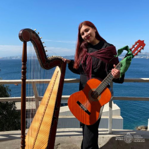 “Cuando ingresé a primer año, conocí a la profesora Viviana Morales. Participamos en un conversatorio con la cantante chilena Chabelita Fuentes, en el que se interpretó música tradicional. Ver a Chabelita tocar el arpa fue una experiencia muy inspiradora. Además, la profesora Viviana nos mostró el arpa en una clase, lo que despertó mi interés por el instrumento. Desde entonces, ella me ha enseñado y apoyado enormemente en este camino”, relató la estudiante.