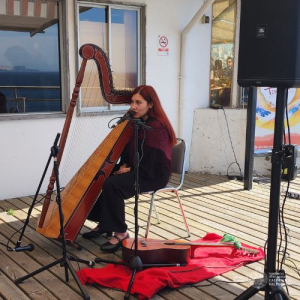 Estudiante interpretó el arpa en concierto de música folclórica en la Escuela de Alimentos PUCV