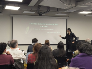 Finalmente, Benjamín Ben-Azul Lillo mostró “Por las noches oímos los cantos”.