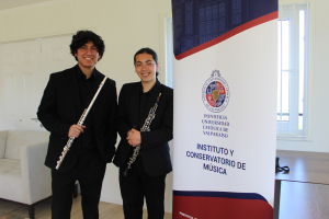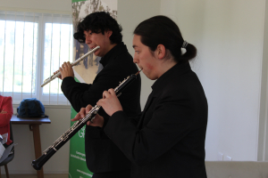 Los estudiantes de la carrera de Interpretación Musical del Instituto de Música PUCV, Miguel DiBiaggio (flauta traversa) y Manuel Saguriee (oboe), realizaron un concierto pedagógico en la Corporación La Granja, entidad que trabaja en la capacitación de personas adultas en situación de discapacidad intelectual. Su misión es entregar herramientas que favorezcan el desarrollo de competencias sociolaborales, fomentando la independencia y la inclusión en distintos ámbitos de la vida cotidiana.