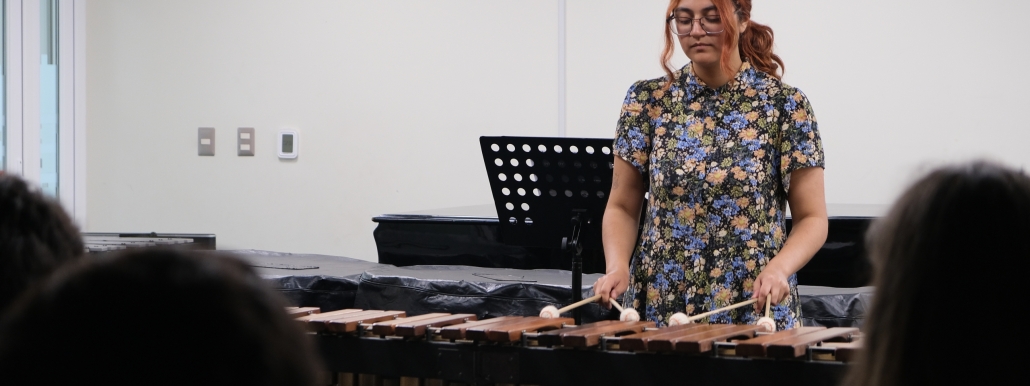 El miércoles 10 de diciembre, la Sala Margot Loyola del Instituto de Música de la Pontificia Universidad Católica de Valparaíso (IMUS PUCV) fue escenario de un concierto de la cátedra de Percusión, una instancia artística que reunió a estudiantes de la especialidad en una presentación abierta a la comunidad.